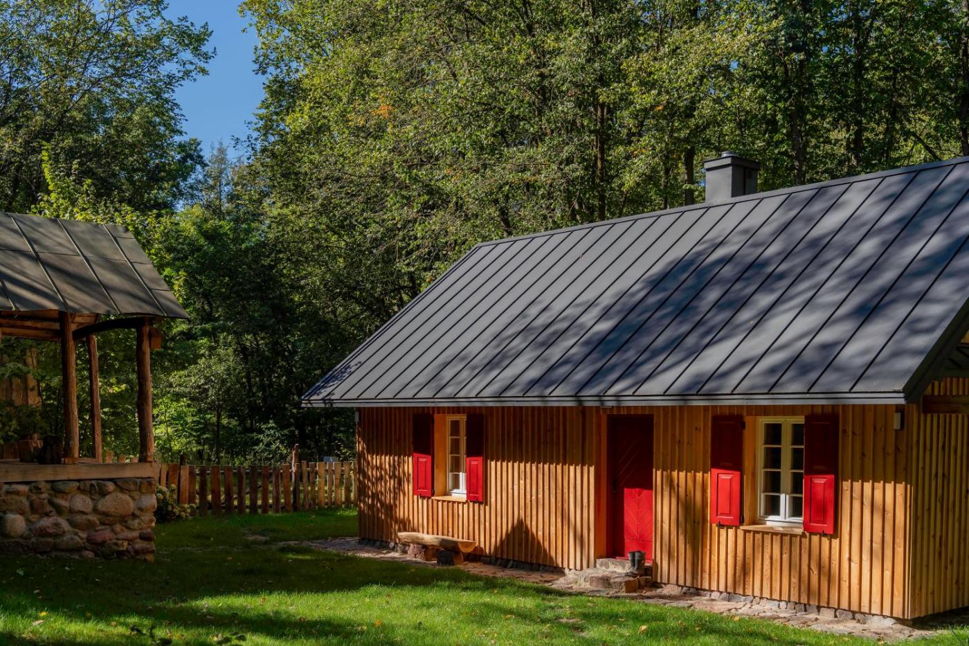 Dom z 2 sypialniami. This holiday homes special feature is the fireplace. Boasting a private entrance, this holiday home also includes 2 bedrooms, a seating area and 1 bathroom with a bath and a hairdryer. Guests will find a stovetop, a refrigerator, a dishwasher and kitchenware in the well-fitted kitchen. The holiday home also features a barbecue. The holiday home offers soundproof walls, a tea and coffee maker, a dining area as well as a terrace with garden views. The unit has 2 beds. Dom wakacyjny - 2 osobowy. Powierzchnia pokoju ok.: 100 mkw.