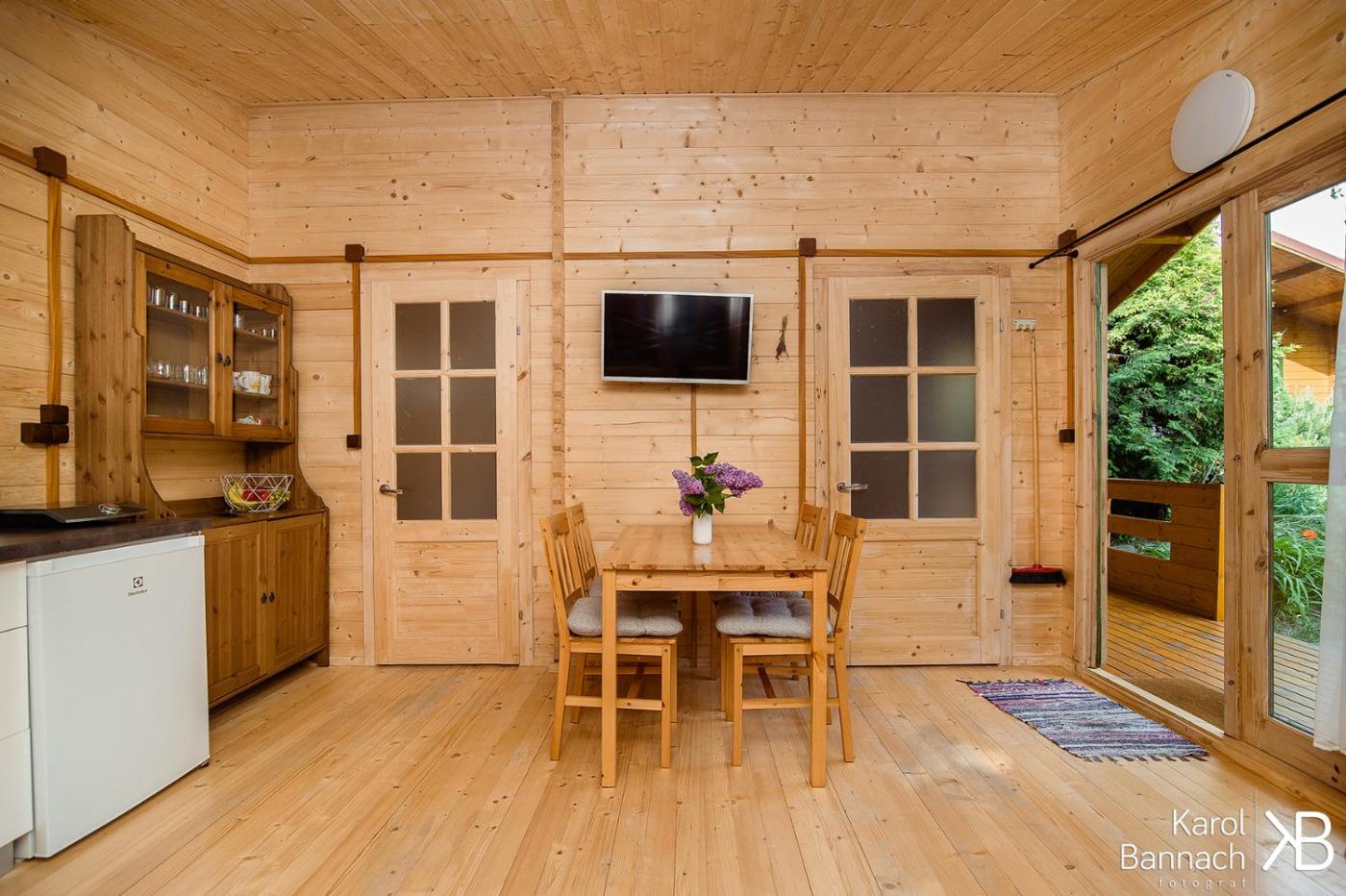 Domek z 1 sypialnią. Boasting a private entrance, this chalet also comes with 1 living room, 1 separate bedroom and 1 bathroom with a shower. The kitchen features a stovetop, a refrigerator and kitchenware. Featuring a terrace with garden views, this chalet also features an electric kettle and a flat-screen TV. The unit has 2 beds. Domek - 4 osobowy. Powierzchnia pokoju ok.: 30 mkw.