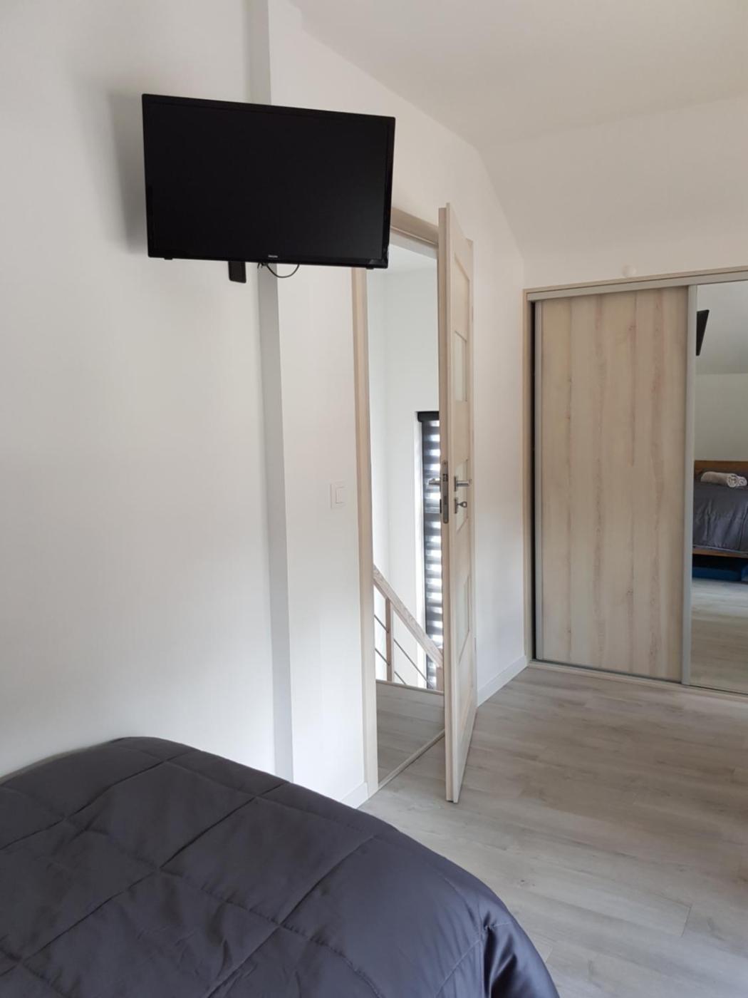 Dom wakacyjny. Featuring a private entrance, this air-conditioned holiday home consists of 1 living room, 2 separate bedrooms and 2 bathrooms with a walk-in shower and a bath. Guests will find a stovetop, a refrigerator, a dishwasher and kitchenware in the fully equipped kitchen. The holiday home also offers a barbecue. Boasting a terrace with garden views, this holiday home also provides a washing machine and a flat-screen TV with satellite channels. The unit offers 4 beds. Dom wakacyjny - 6 osobowy. Powierzchnia pokoju ok.: 75 mkw.
